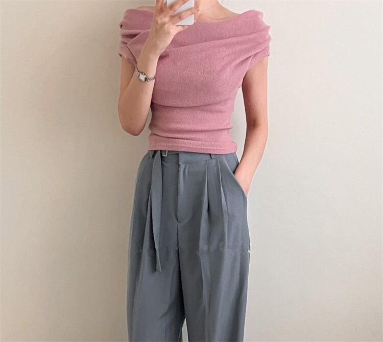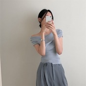 一目であなたを見分けることができます お出かけ オフショルダー Tシャツ 上着 ミニマリスト sweet系