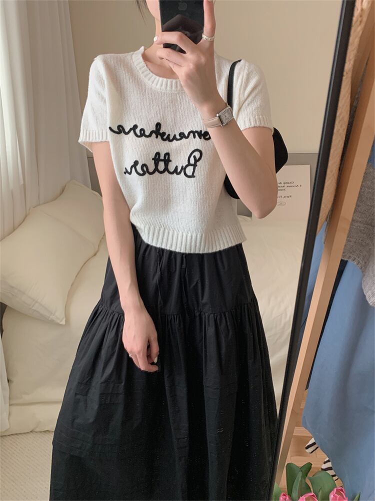 きちんと感をGET ニットトップス 刺繍 短いスタイル デザインセンス アルファベット 大人気 通勤