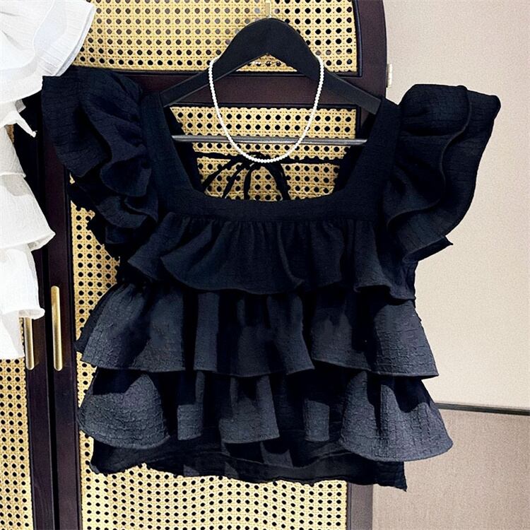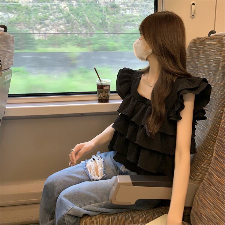 モデルはあなたです INSスタイル 2024夏 sweet系 フリル袖 気質 スクエアネック シャツ レディース