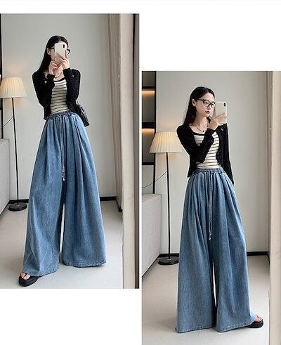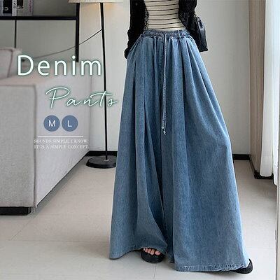 ワイドパンツ レディース 秋 冬 長め ロング丈 デニムパンツ パンツ デニム フレアパンツ ジーンズ ボトムス ゆったり 体型カバー ウエスト 大人 ウエストゴム 着?せ 美脚 おしゃれ きれいめ