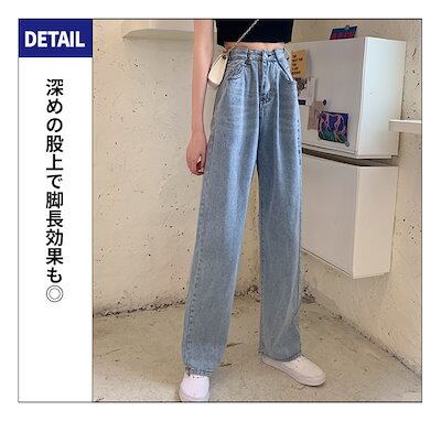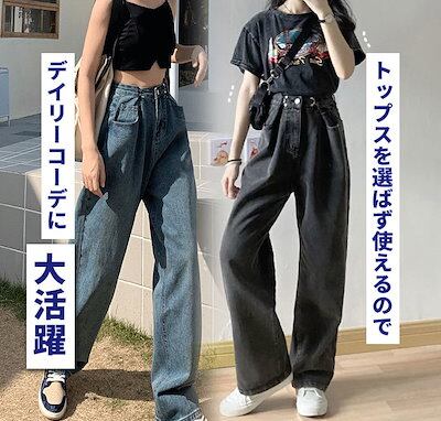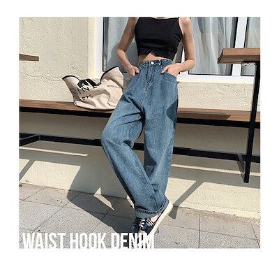 【即納】ワイドパンツ デニム レディース 調節 ハイウエスト ストレートデニム トレンド 体型カバー 小尻効果 骨格ウェーブ 骨格ストレート ゆったり ウエストホック 可愛い 韓国ファッション