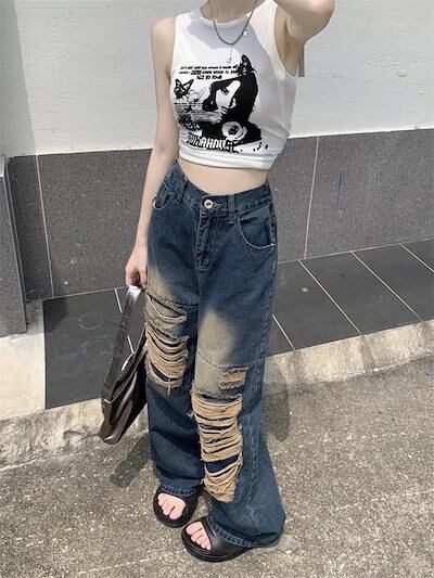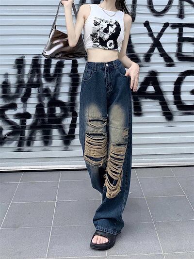 2024春夏 デニムパンツ ボトムス ジーンズ ファッション系スタイル ゆるダボ ジーンズ シルエット加工 カジュアル メンズライク