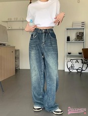 パンツ デニム ジーンズ ワイド ストレート ハイウエスト 脚長効果 美脚効果 細見え 春 カジュアル 韓国ファッション レディース お出かけ