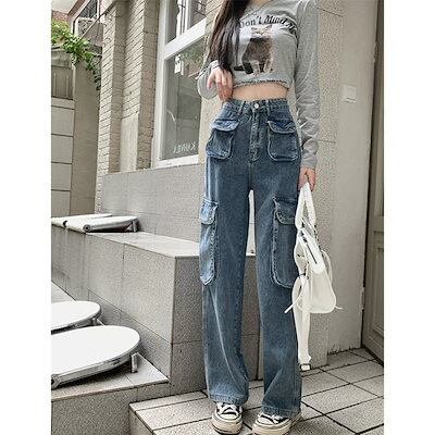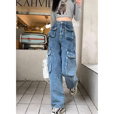 【3日以内出荷】脚長効果!デニムパンツ ワークウェア ズボン ヴィンテージブルー レディース ストレート ドレープ パンツ ゆったり ワイドパンツ 韓国ファッション