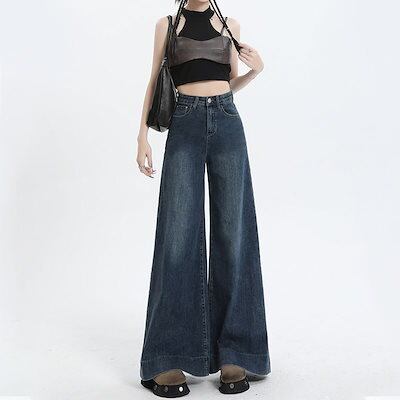 【3日以内出荷】脚長効果!デニムパンツ ワイドレッグジーンズ レディース ハイウエスト ワイドジーンズ フレアパンツ モッピング・パンツ ストレートパンツ 韓国ファッション