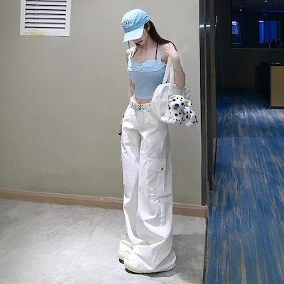 【3日以内出荷】脚長効果!デニムパンツ ホワイト 作業着ズボン レディース 2025年春 ゆったり ワイドパンツ 薄手 百掛け 韓国ファッション