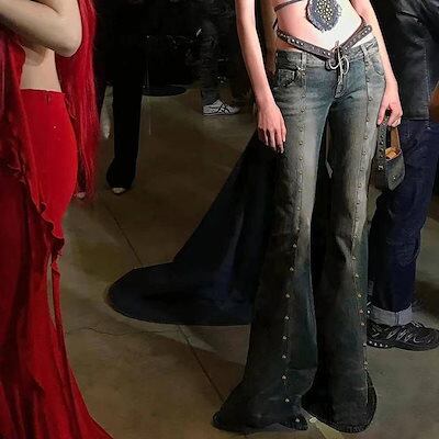 2025春夏 デニムパンツ ボトムス ハイウエスト ジーンズ K-POP ファッション系韓国風スタイル ゆるダボウェア練習ジーンズ シルエット加工ゆったり レディースカジュアル型春夏メンズライク衣装