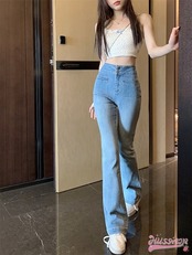 パンツ デニム ジーンズ スキニー ワイドレッグ ハイウエスト 脚長効果 美脚効果 細見え 春 カジュアル 韓国ファッション レディース お出かけ