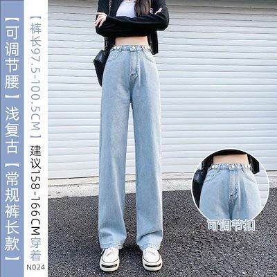 ジレンズ脚長効果! ジーパンレディース ストレートジーンズ ハイウエスト ゆとりがある ワイドパンツ ラッパズボン 調整可能 スキニージーンズ ジーパン