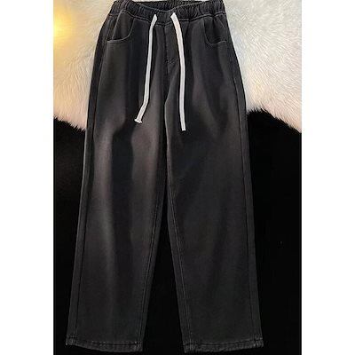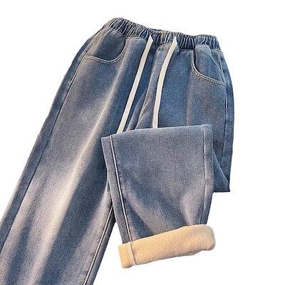 2025年新品の発売ウエストゴム あったか ジーンズ 裏起毛 デニムパンツ 厚手 ジーパン レディース ワイドパンツ 冬 ハイウエスト ストレートパンツ ゆったり 着痩せ