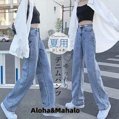 激安 デニムパンツ レディース ワイドパンツ ジーパン ジーンズ ワイドルック ゆったり ロングパンツ ハイウエスト カジュアル ボトムス 韓国 ファッション