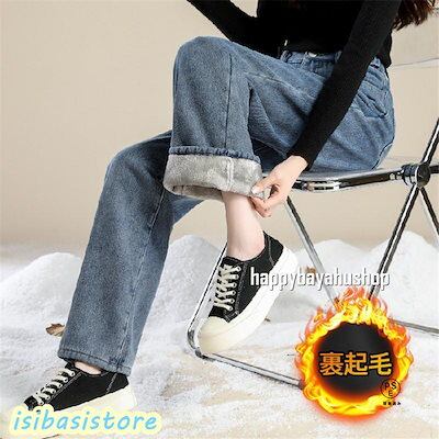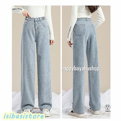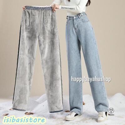 デニムパンツ レディース ワイドパンツ 裏起毛 裏ボア ジーンズ 厚手 ハイウエスト 秋冬 ジーパン 保温 防寒 暖かい ロングパンツ ゆったり 通勤