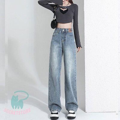 新品(タイムセール)デニム レディース パンツ ジーンズ デニム ボ 美脚 チノパン ハイウエスト ワイドパンツ パンツ 体型カバー 春 夏 秋 ジーパン 20代 30代 40代 50代