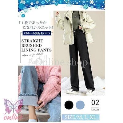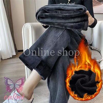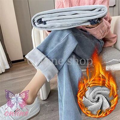 デニムパンツ レディース 裏起毛 ジーンズ ゆったり 厚手 裏起毛パンツ ストレート 保温 ジーパン 防寒 暖かい ワイドパンツ