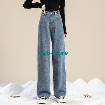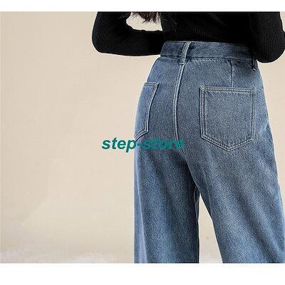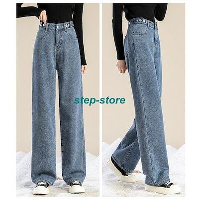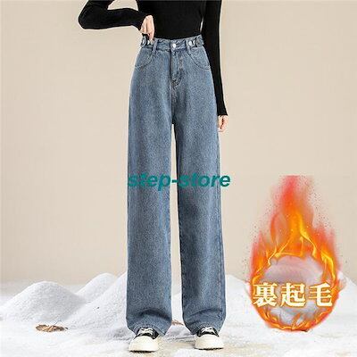 レディース デニムパンツ 裏起毛 ハイウエスト デニム パンツ 秋 冬 ワイドパンツ ゆったり 脚長効果 ジーンズ 韓国ファッション あったかい 美脚おすすめ商品
