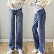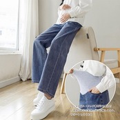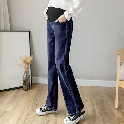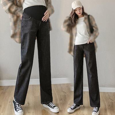 流行のスタイル デニムパンツ レディース ジーンズ マタニティズボン デニムセミワイドパンツ