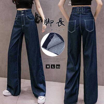秋冬の新作 デニム ワイドパンツ ハイウエスト 脚長 デニムパンツ レディース ジーンズ