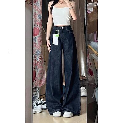 流行のスタイル デニムパンツ ワイドレッグジーンズレディース秋新作ハイウエストルーズレトロストレートジーンズパンツ