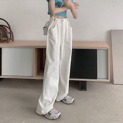 ホワイトジーンズレディースは痩せ春秋韓国ハイウエストワイドパンツモッピングパンツ