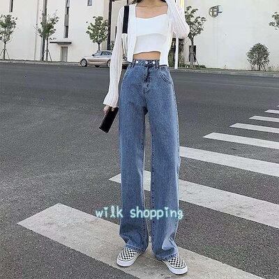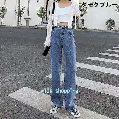 デニムパンツ レディース ワイドパンツ ジーパン ジーンズ ワイドルック ゆったり ロングパンツ ハイウエスト カジュアル ボトムス