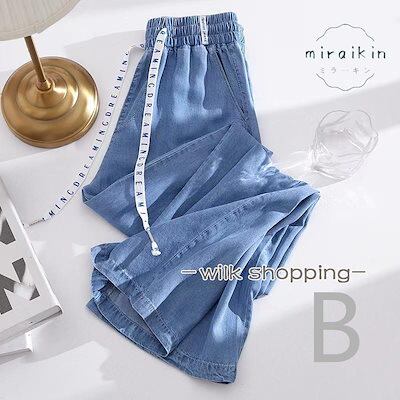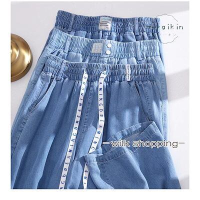 ジーンズ レディース テンセル デニムパンツ 春物レディースボトムス ワイドパンツ 夏デニム 落ち感 春秋 ロングパンツ ウエストゴム 大きいサイズ展開
