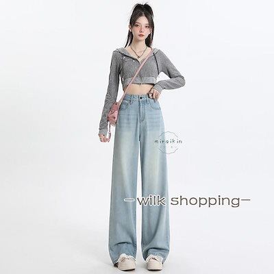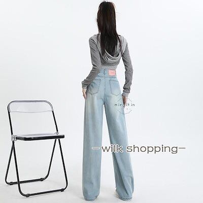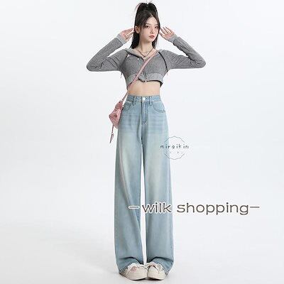 ハイウエスト ワイドパンツ デニム ストレートパンツ レディース ジーンズ デニムパンツ 春 春夏 夏 美脚 ロングパンツ ボトムス ズボン 長ズボン ライトブルー