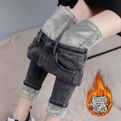 【送 料 無 料】脚長効果!デニムパンツ スキニーデニム レディース レギンス パンツ ワイドパンツ 四節適用 裏起毛 韓国ファッション ズボン秋 冬