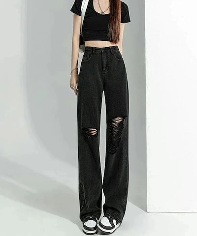 脚長効果!デニムボトムス ダメージジーンズ レディース デニムパンツ 太ももゆったり ワイド ダメージ ジーンズ デニム パンツ ボトム ワイドパンツ ワイドデニム メカ割