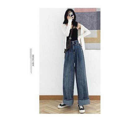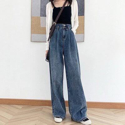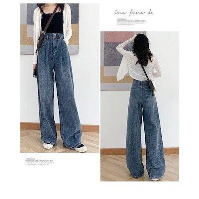 季節限定 ジーンズ レディース デニムパンツ ストレート ジーパン ワイドパンツ ハイウエスト デニムズボン ロング丈 ゆったり 着痩せ 春夏 秋 オシャレ 20代30代40代