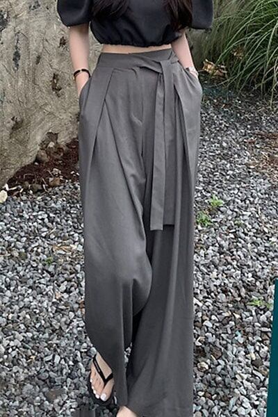 韓国ファッション 春 薄手ハイウエスト ロングスラックスパンツ 百掛け ロングパンツ ワイドパンツ ストレート スラックスパンツ