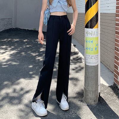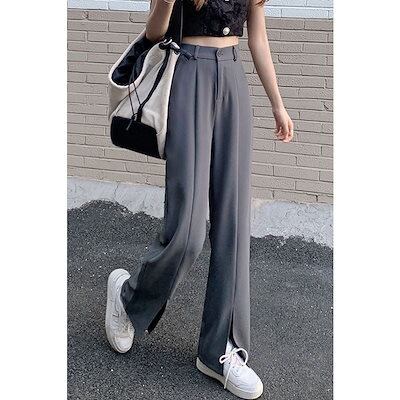 デニムパンツ ワイドパンツ タイツ ワイドパンツ 着痩せ ストレート スーツ スリット スラックスパンツ
