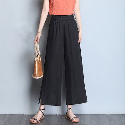 デニムパンツ リネンパンツ スリットワイドパンツ ハイウエストシンプル ウエストパンツ スラックスパンツ