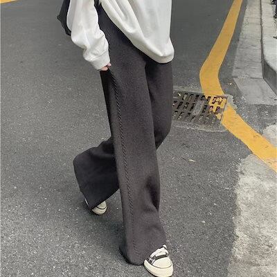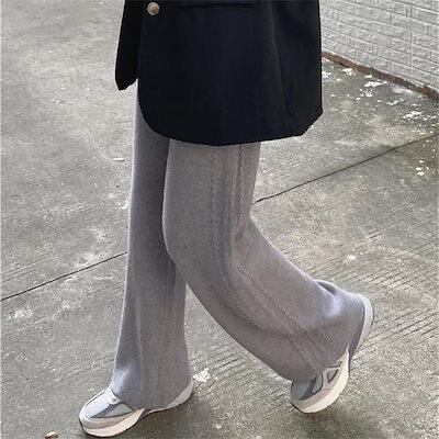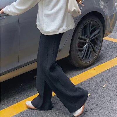 脚長効果!スキニーパンツ 韓国 ニットパンツ ゆったり 快適な 防寒 太め体型カバー 保温 ワイドパンツ ハイウエスト カジュアルパンツ スラックスパンツ