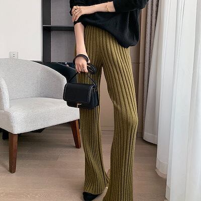 ニットパンツゆったりした新型秋冬韓版無地 ハイウエスト 垂れ下がって感 ワイドパンツ セーターズボン脚長効果!スキニーパンツ スラックスパンツ