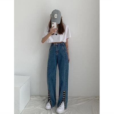 かっこいい!スラックスパンツワイドパンツデニムボトムス脚長効果!スキニーデニムパンツデニムパンツ ワイドパンツ ジーンズ レディース ロングパンツ ワイドパンツ ハイウエストパンツ 脚長効果!スキニー