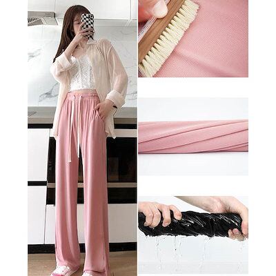 ジョガーパンツ アイスシルク スラックスパンツ ゆったりプリーツ ワイドパンツ レディース ロングパンツ ズボン脚長効果スキニーパンツ スラックスパンツ