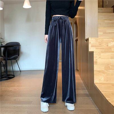 ボトムス パンツ レディース ワイドパンツ ベロア 大人可愛い きれいめ シンプル 大人 おしゃれ とろみ感 抜け感 S M L XL 2XL 3XL 4XL 大きいサイズ ウエストゴム 個性的