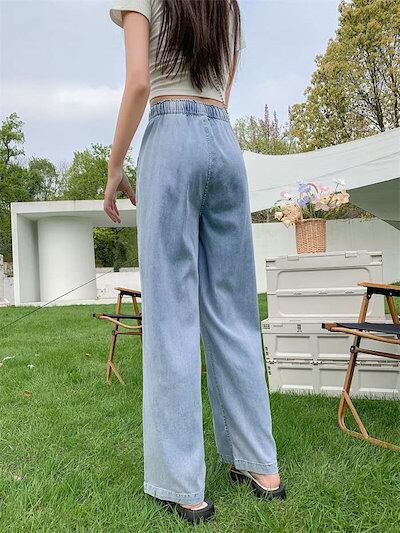 ワイドパンツ レディース デニム パンツ 大きいサイズ ひんやり ガウチョ デニムワイドパンツ UVカット 春 きれいめ ボトムス ゆるパンツ 薄手 夏 ウエストゴム 着痩せ 美脚 通勤 ゆったり 可