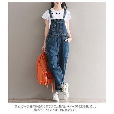 2025年新品の発売デニムオーバーオール レディース サロペット マキシ丈 ダメージ ゆったり 大きいサイズ ワンピース オールインワン ワイドパンツ 春 夏 秋 冬