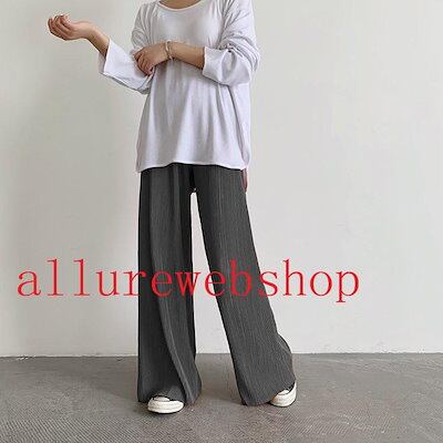 (新年は通常通り出荷)プリーツパンツ セルフカット 秋冬 大 レディース 9色 ワイドパンツ 秋 冬 シフォン 大きいサイズ 裾カットOK ウエストゴム ボトムス
