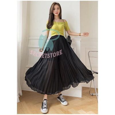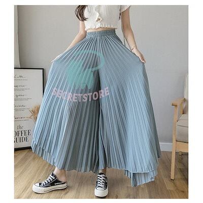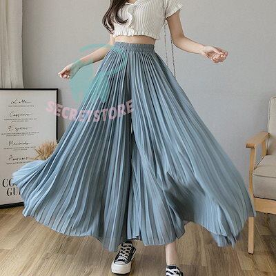 新品(タイムセール)ワイドパンツ プリーツパンツ スカーチョ レディース ガウチョパンツ スカンツ ロング丈 ボ ウェストゴム 春 夏 秋 大きいサイズ ゆったり