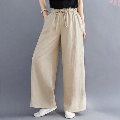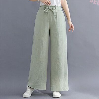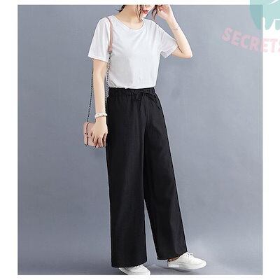 新品(タイムセール)ワイドパンツ レディース リネン風 綿 コットン ゆったり 洗える 体型カバー ロング丈 ナチュラル ボ カジュアル 大きいサイズ 無地
