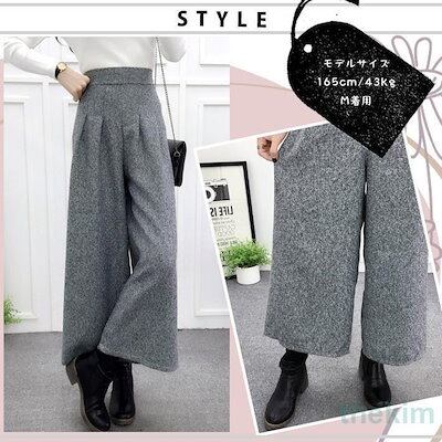 新品(タイムセール)ワイドパンツ レディース ガウチョ キュロット フレア スカーチョ スカンツ ハイウエスト 九分丈 ロング丈 チェック 大きいサイズ 厚手 暖かい 起毛 秋 冬 秋冬