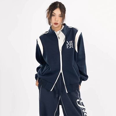 2024 秋冬 2点セット トップスパーカー フード付き チャック韓国羽織り ショート丈 フルパーカー ルーズ サイド上下ボトムス ストレート系冬ダブルゆったりサイズワイドシルエットリラックストラック