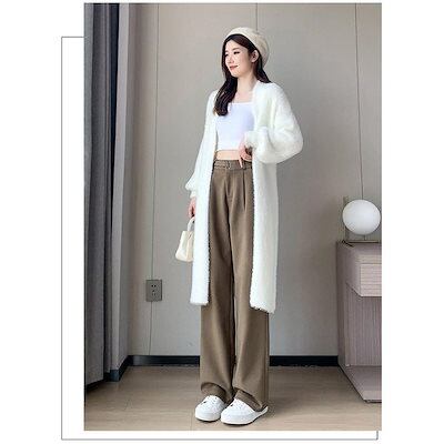 ワイドパンツ 秋冬 レディース きれいめ イージーパンツ 大きいサイズ ウエストゴム ボトムス 冬 パンツ 厚手 ロングパンツ ツイード風 タックワイドパンツ 通勤
