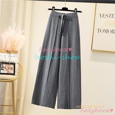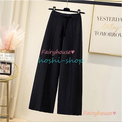 早く新品を選んで!ニットワイドパンツ レディース 秋冬 ロング丈 セーター ストレートズボン 黒ボトムス 大きいサイズ カジュアル韓国風 おしゃれ 通勤 体型カバー40代50代30代