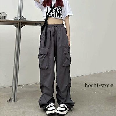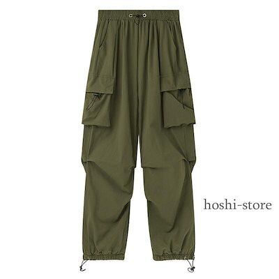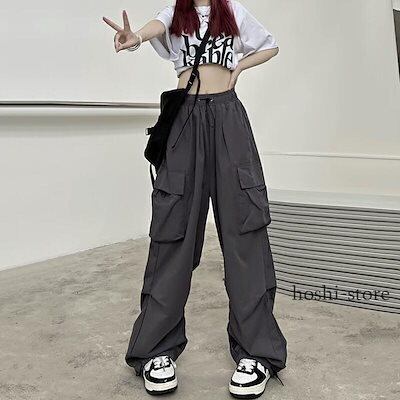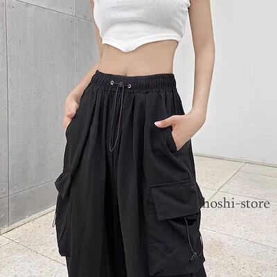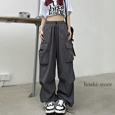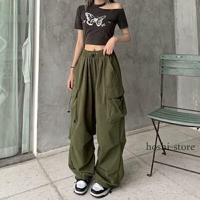 早く新品を選んで!カーゴパンツ レディース ゆったり ワイド パンツ パンツ ボトムス ミリタリー サイドポケット 大きい 大きいサイズ 体型カバー 裾ドローコード 太め ダンス