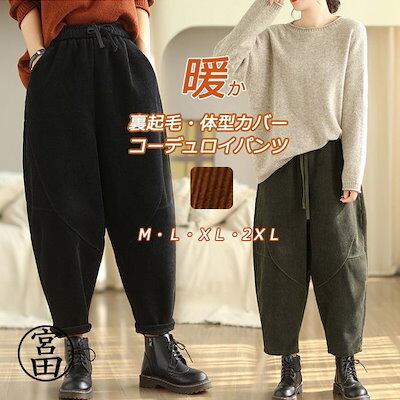 冬の暖かさ!パンツ 裏起毛 ワイドパンツ コーデュロイ 裏起毛パンツ レディース 秋冬 大きいサイズ コーデュロイパンツ ワイド ボトムス 体型カバー バルーンパンツ サーカ
