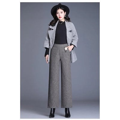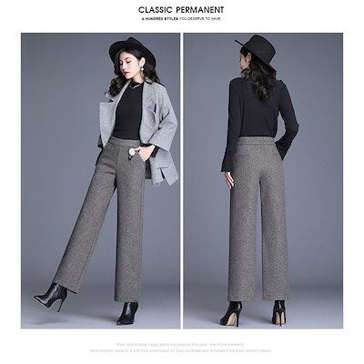 メガ割 ウール混パンツ ワイドパンツ レディース ガウチョパンツ ガウチョ ハイウエスト パンツ ボトムス きれいめ 通勤 オフィス L 着痩せ
