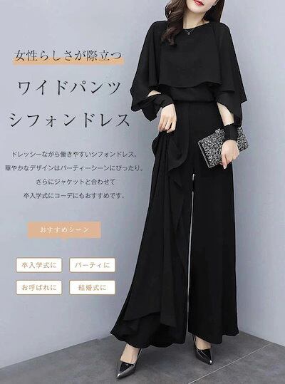 セットアップ レディース パンツドレス 結婚式 セットアップ 袖あり ワイドパンツ ブラウス ガウチョパンツ 卒業式 オールインワン パンツ パンツスーツ フォーマル パーティー 披露宴 二次会 20